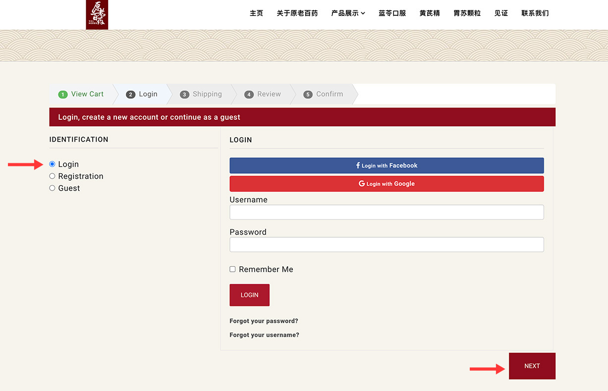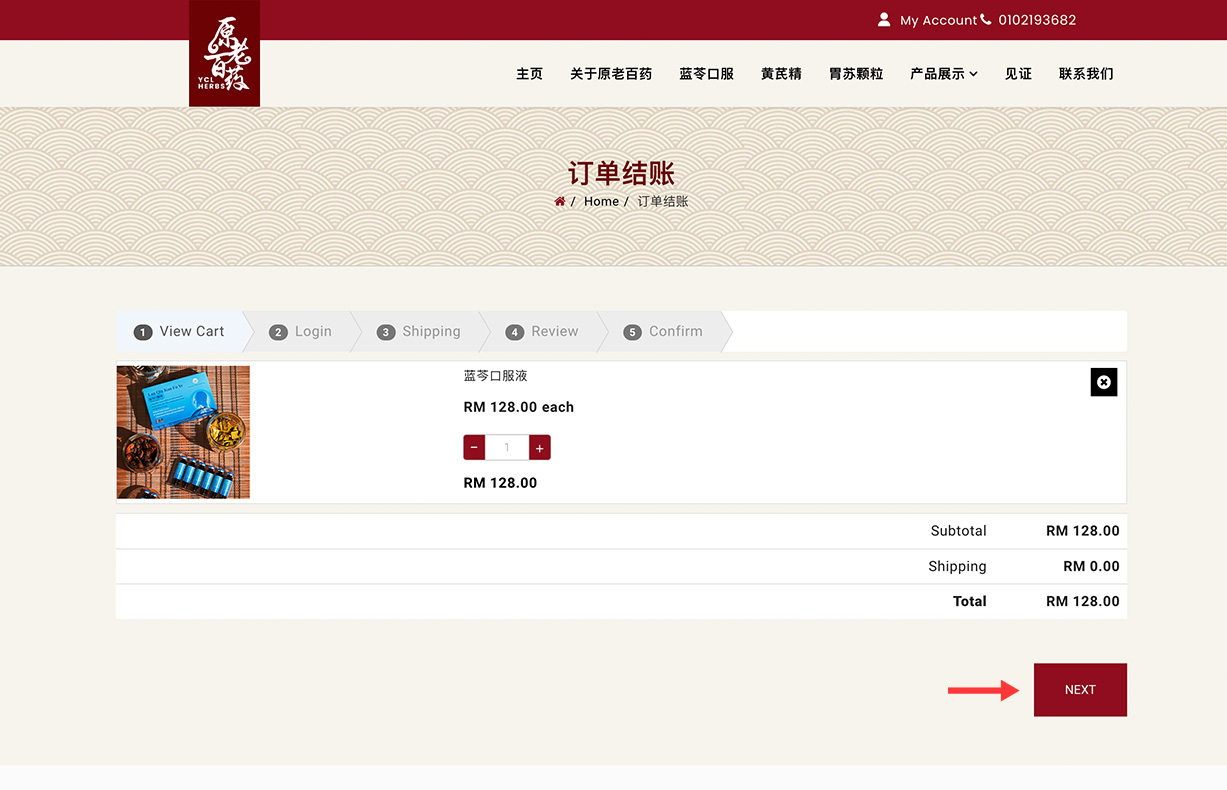 檢查你的購物車。確認你购买的物品无误後,請点击 “NEXT” 繼續下一步。