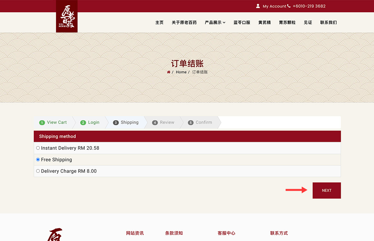 Choose your shipping method. Then click "Next" button to proceed.